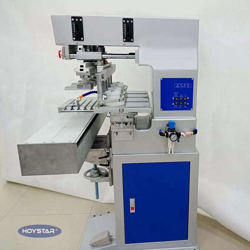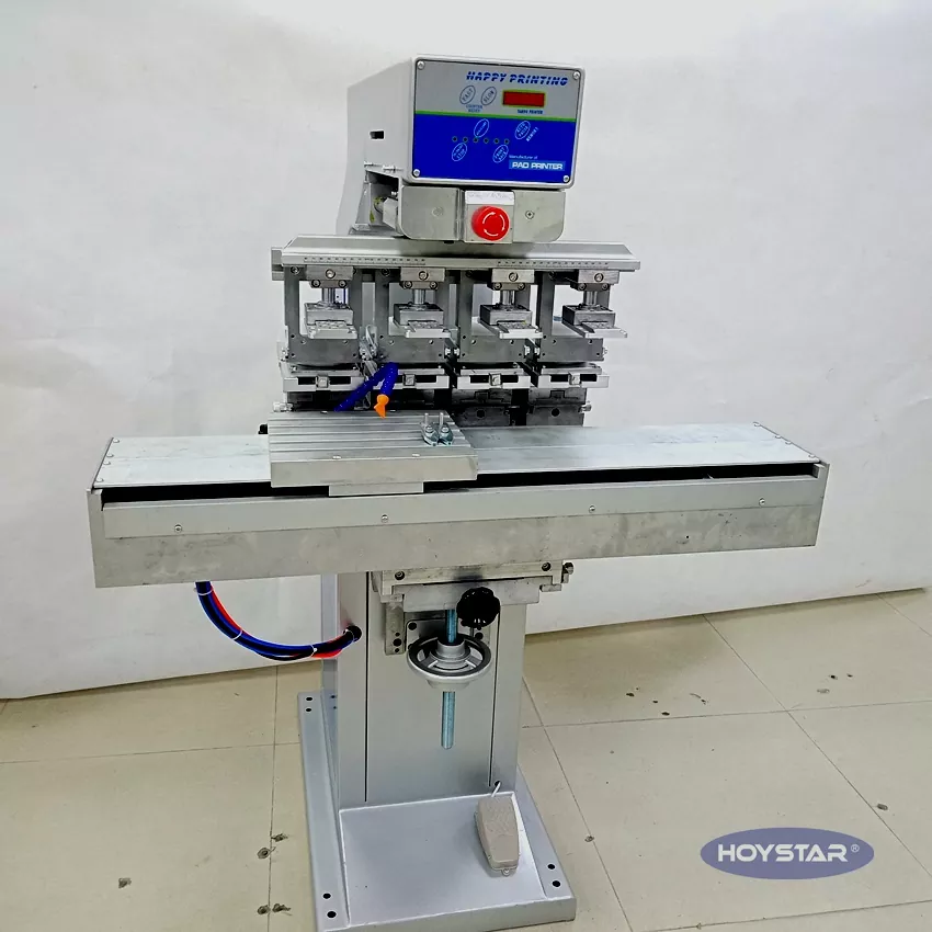 Αυτός ο εκτυπωτής HOYSTAR 4 Color Pad με Shuttle Worktable for Cover είναι ένας εξοπλισμός εκτύπωσης υψηλής ικανότητας και οικονομικής απόδοσης. Το μηχάνημα προσφέρει βολική ρύθμιση, σταθερή λειτουργία και καλό αποτέλεσμα εκτύπωσης. Το μηχάνημα προσφέρει σταθερή ποιότητα εκτύπωσης και κατάλληλο για εκτύπωση μεγάλης γκάμα ειδών όπως ηλεκτρονικά προϊόντα, πλαστικά κοχύλια, προϊόντα υλικού, χαρτικά, μικρές τέχνες και χειροτεχνίες, καθώς και τα μικρά λογότυπα στην επιφάνεια των δώρων και άλλα. Μπορεί να καλύψει τις διαφορετικές απαιτήσεις εκτύπωσης του πελάτη.