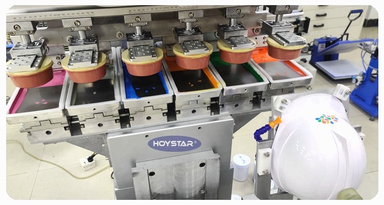 Ως επαγγελματίας κατασκευαστής στην Κίνα, θα θέλαμε να σας παρέχουμε μηχανή εκτύπωσης προστατευτικού κράνους υψηλής απόδοσης HOYSTAR 6 Color Safety Pad, η οποία είναι ειδικά σχεδιασμένη για εκτύπωση σε κράνος ασφαλείας. Σχεδιασμένο για να ολοκληρώσει την εκτύπωση 6 χρωμάτων σε έναν μόνο κύκλο παραγωγής, χωρίς να χρειάζεται επαναλαμβανόμενες ρυθμίσεις και να μειώνει σημαντικά τον χρόνο παραγωγής. Πέρα από τα σκληρά καπέλα, η ευέλικτη σχεδίασή του επιτρέπει επίσης την απρόσκοπτη εκτύπωση σε μια ποικιλία προϊόντων παρόμοιου σχήματος, όπως προστατευτικά κράνη, πλαστικά περιβλήματα εργαλείων και μικρά αξεσουάρ με σκληρό κέλυφος.