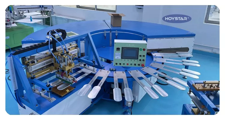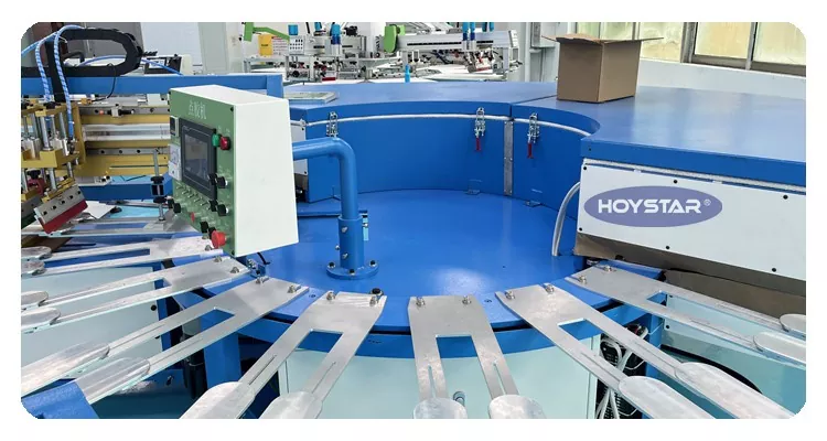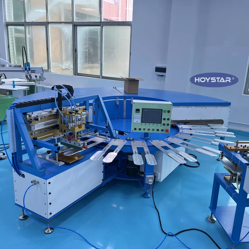 Η HOYSTAR είναι ένας αξιόπιστος κατασκευαστής και προμηθευτής στην Κίνα. Αυτό το μηχάνημα μεταξοτυπίας με αντιολισθητικές κάλτσες υψηλής ταχύτητας HOYSTAR έχει σχεδιαστεί για εφαρμογές στη βιομηχανία πλεξίματος υφασμάτων. Με ταχύτητα έως και 800-1000 pairs/Hr, είναι κατάλληλο για εκτύπωση αντιολισθηρών κάλτσων, κάλτσες μωρών, κάλτσες ενηλίκων, κάλτσες ποδοσφαίρου κ.λπ. Εξοπλισμένο με περιστροφικό τραπέζι εργασίας, είναι πολύ βολικό για φόρτωση και ξεφόρτωση κάλτσες. Έλεγχος οθόνης αφής PLC, πολύ εύκολο στη χρήση. Το μηχάνημα εξοπλισμένο με σύστημα στεγνώματος μπορεί να στεγνώσει καλά το πυρίτιο και το μελάνι.