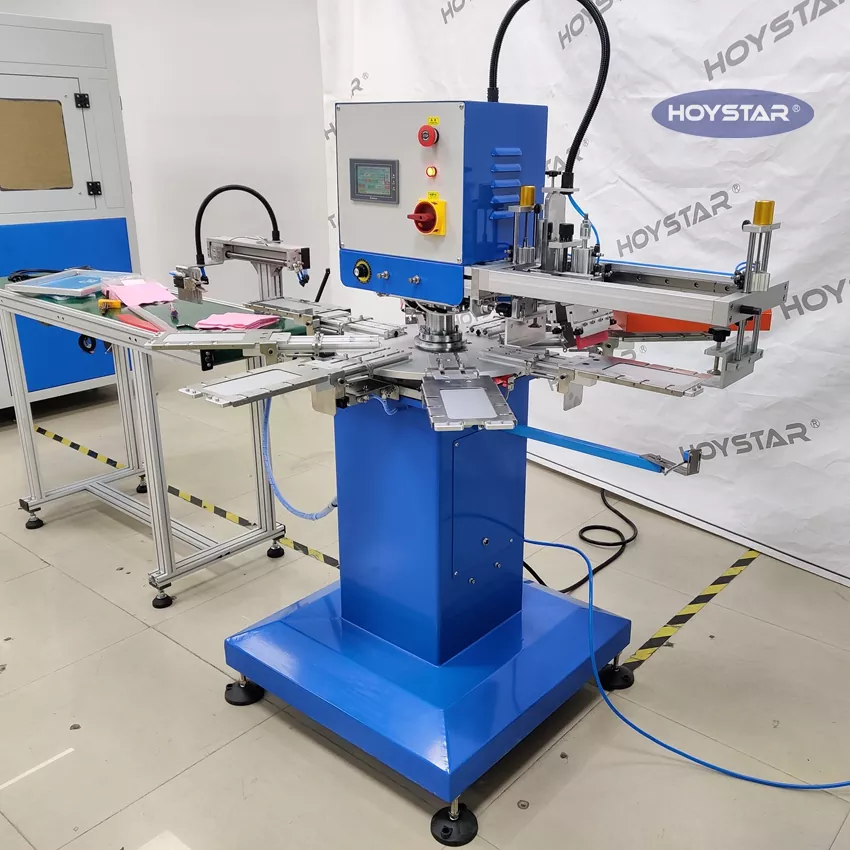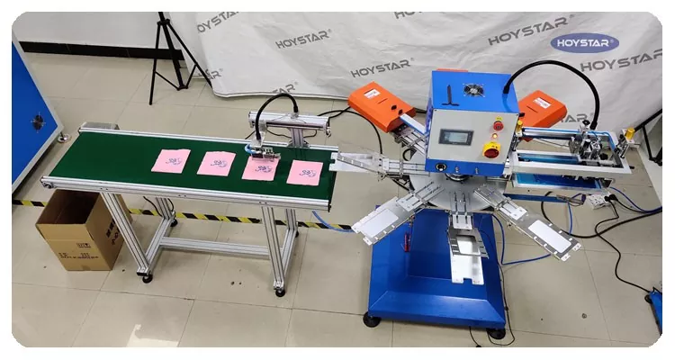 Ως επαγγελματίας κατασκευαστής και προμηθευτής, HOYSTAR Automatic 1 Color Screen Printing Machine. έχει σχεδιαστεί ειδικά για πλήρως αυτόματη εκτύπωση σε χαρτοπετσέτες. Η απλοποιημένη διαδικασία εκτύπωσής του ξεδιπλώνεται ως εξής: τοποθετήστε τις χαρτοπετσέτες με το χέρι στο μηχάνημα—αυτόματη εκτύπωση του πρώτου χρώματος—αυτόματο στέγνωμα—αυτόματο ξεφόρτωμα—και αυτόματη συλλογή προϊόντων.