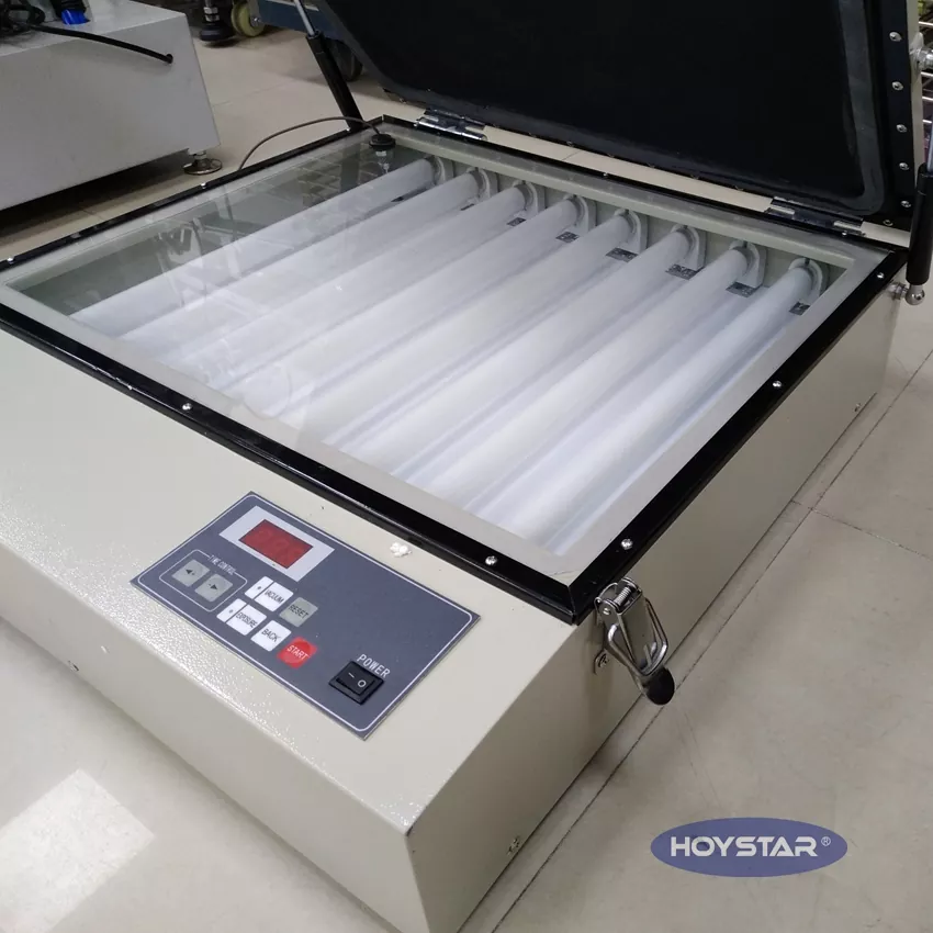Το μηχάνημα έκθεσης σε κενό υπεριώδη ακτινοβολία με στέγνωμα για μεταξοτυπία εξοπλισμένο με πίνακα λειτουργίας, ο χρόνος έκθεσης μπορεί να ρυθμιστεί ελεύθερα ανάλογα με τις ανάγκες