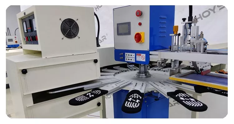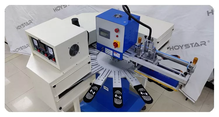 Ως επαγγελματίας κατασκευαστής και προμηθευτής, αυτό το μηχάνημα εκτύπωσης μεταξωτών κάλτσων HOYSTAR High Rapid μεγάλου μεγέθους έχει σχεδιαστεί για εφαρμογές στη βιομηχανία πλεξίματος υφασμάτων. Με ταχύτητα έως και 1200PCS/Hr, είναι κατάλληλο για εκτύπωση αντιολισθηρών κάλτσων, κάλτσες μωρών, κάλτσες ενηλίκων, κάλτσες ποδοσφαίρου κ.λπ. Εξοπλισμένο με περιστροφικό τραπέζι εργασίας και 16 θέσεις εργασίας, είναι πολύ βολικό για φόρτωση και ξεφόρτωση κάλτσες. Έλεγχος οθόνης αφής PLC, πολύ εύκολο στη χρήση. Το μηχάνημα εξοπλισμένο με σύστημα στεγνώματος μπορεί να στεγνώσει καλά το πυρίτιο και το μελάνι.