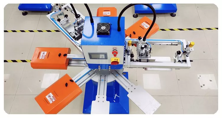 7. Το μηχάνημα περιλαμβάνει 8 θέσεις εργασίας συνολικά: 2 για εκτύπωση, 3 για στέγνωμα και 3 για φόρτωση/εκφόρτωση.