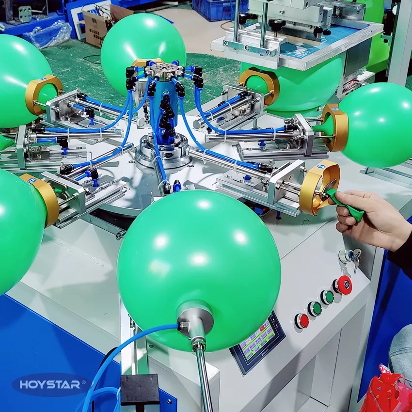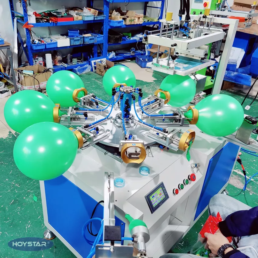 Η HOYSTAR είναι ένας αξιόπιστος κατασκευαστής και προμηθευτής στην Κίνα. Αυτή η μονόχρωμη μηχανή εκτύπωσης μπαλονιών λατέξ HOYSTAR έχει σχεδιαστεί για εκτύπωση σε μπαλόνια λατέξ. Εξοπλισμένο με περιστροφικό τραπέζι εργασίας, αυτόματο φύσημα, αυτόματη περιστροφή, αυτόματο στέγνωμα, λειτουργίες αυτόματης εκφόρτωσης. Έλεγχος οθόνης αφής PLC, φιλική προς το χρήστη διεπαφή για ασφαλή, διαισθητική λειτουργία. Το μηχάνημα συνδυάζει ταχύτητα, ακρίβεια και ευκολία στη χρήση.